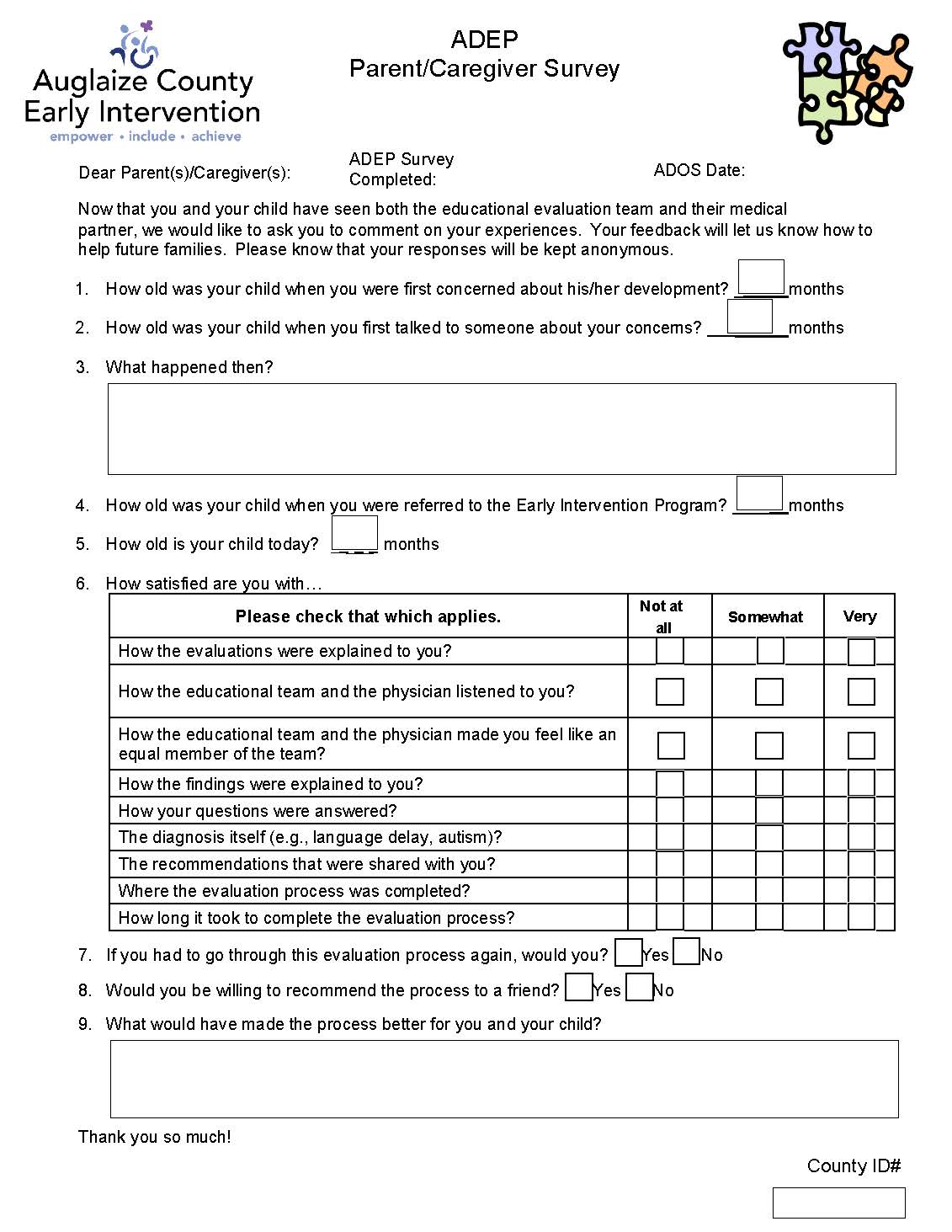 Autism Diagnosis Education Project (ADEP) PARENT/CAREGIVER SURVEY
