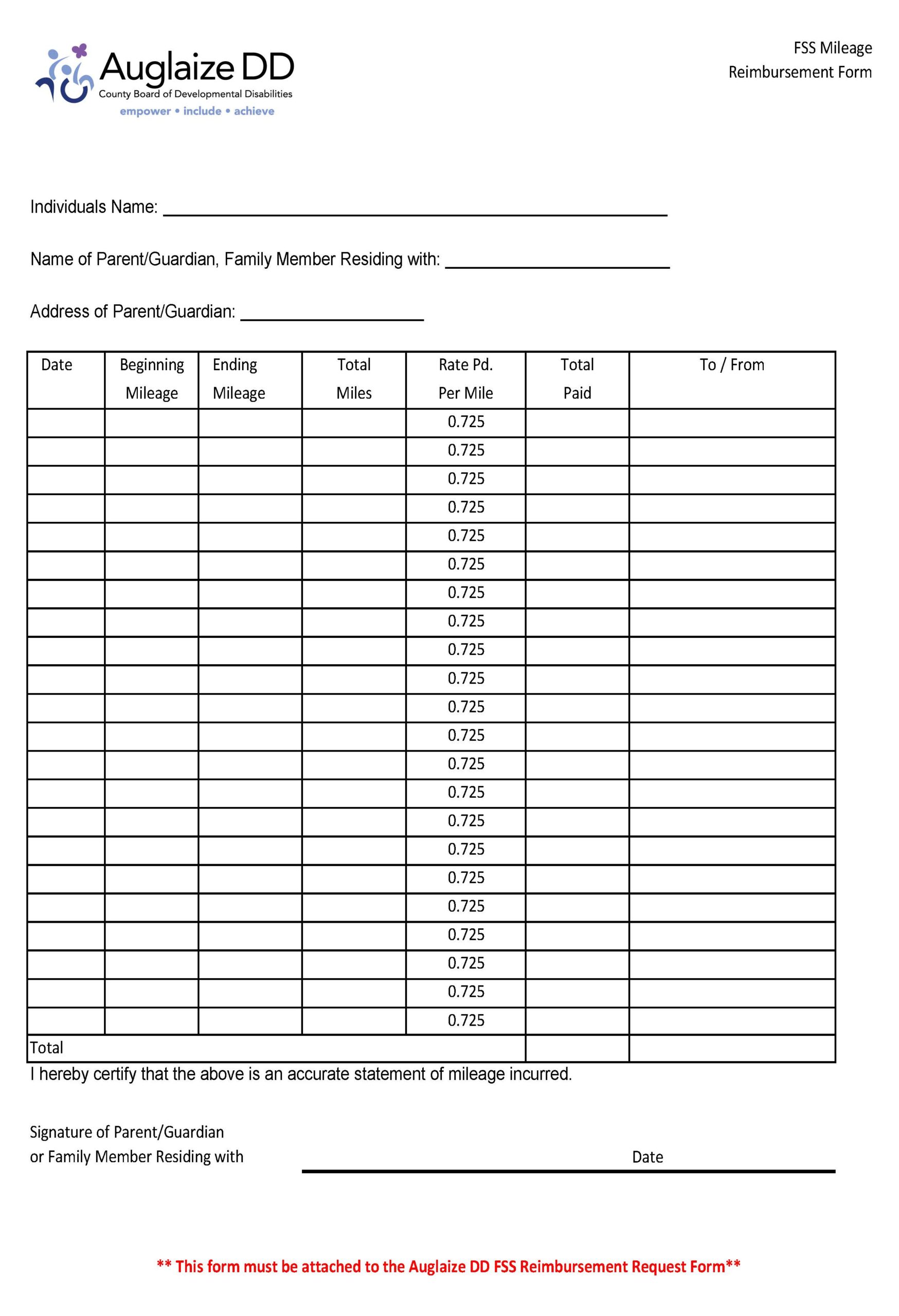 FSS Mileage Reimbursement Form